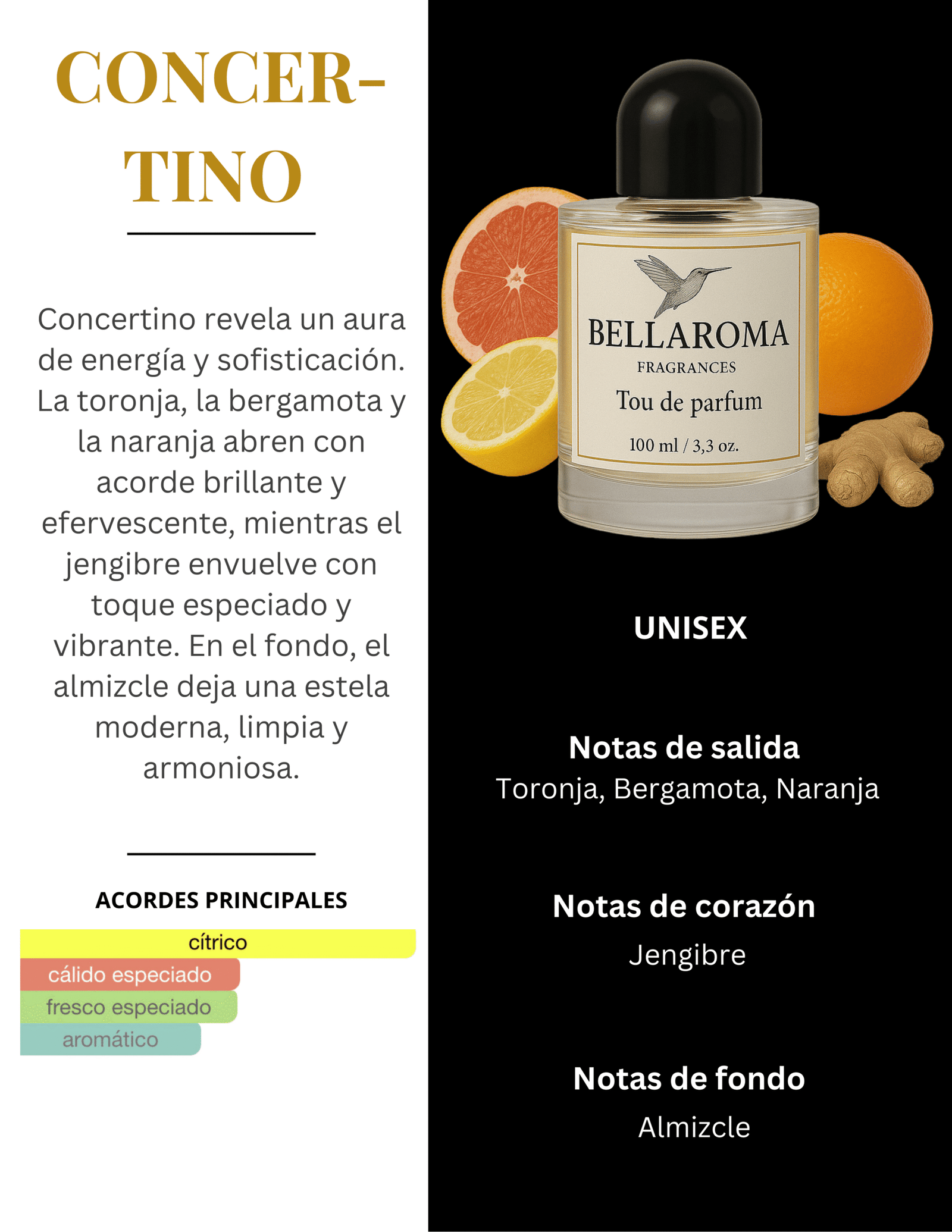 Concertino es una melodía cítrica y luminosa que celebra la energía, la sofisticación y la armonía moderna.