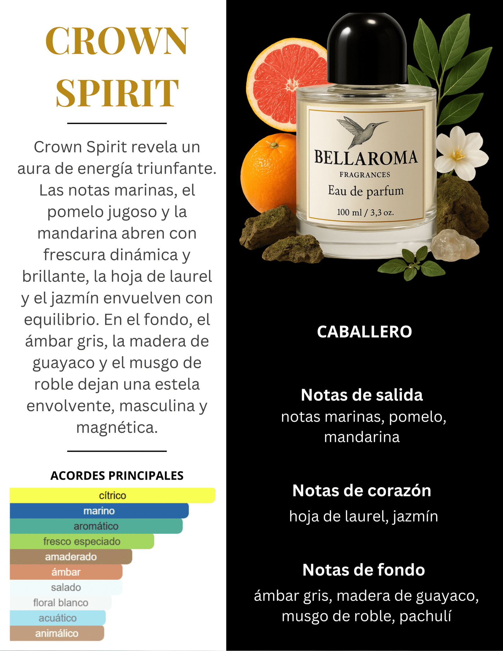 Crown Spirit es una fragancia energética y sofisticada que equilibra la frescura marina con la elegancia masculina.