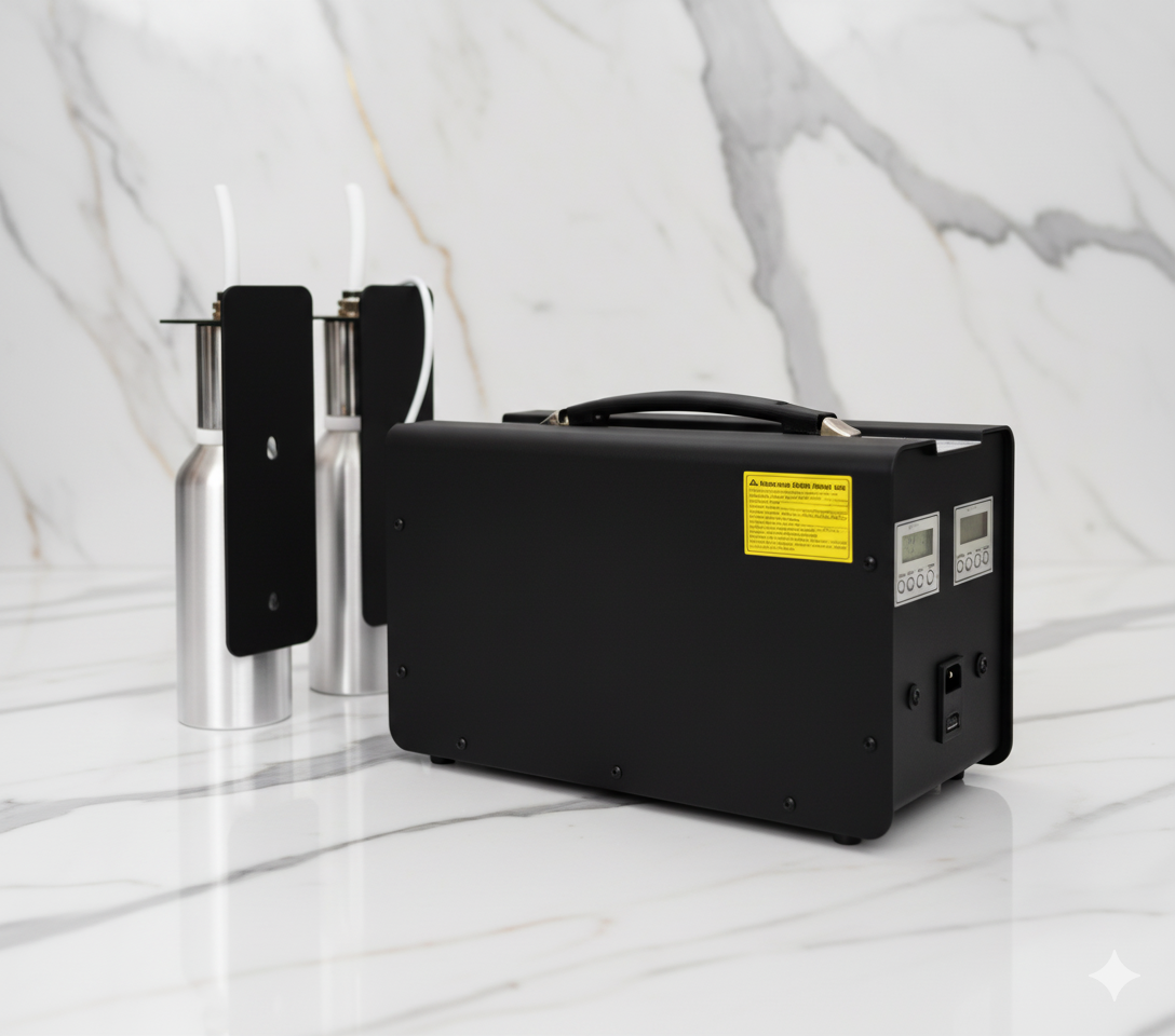 Equipada con nebulización avanzada dual, esta unidad dispone de dos salidas independientes para optimizar el alcance y asegurar una distribución equilibrada del aroma. Además, su pantalla digital con doble programación permite controlar horarios e intensidad con máxima exactitud, adaptándose al flujo y uso del espacio.
