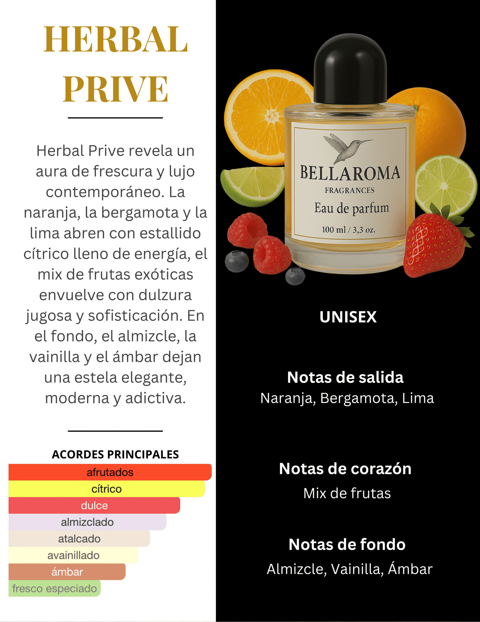 Herbal Prive es una fragancia vibrante y luminosa que celebra la energía, la elegancia y la sofisticación contemporánea.