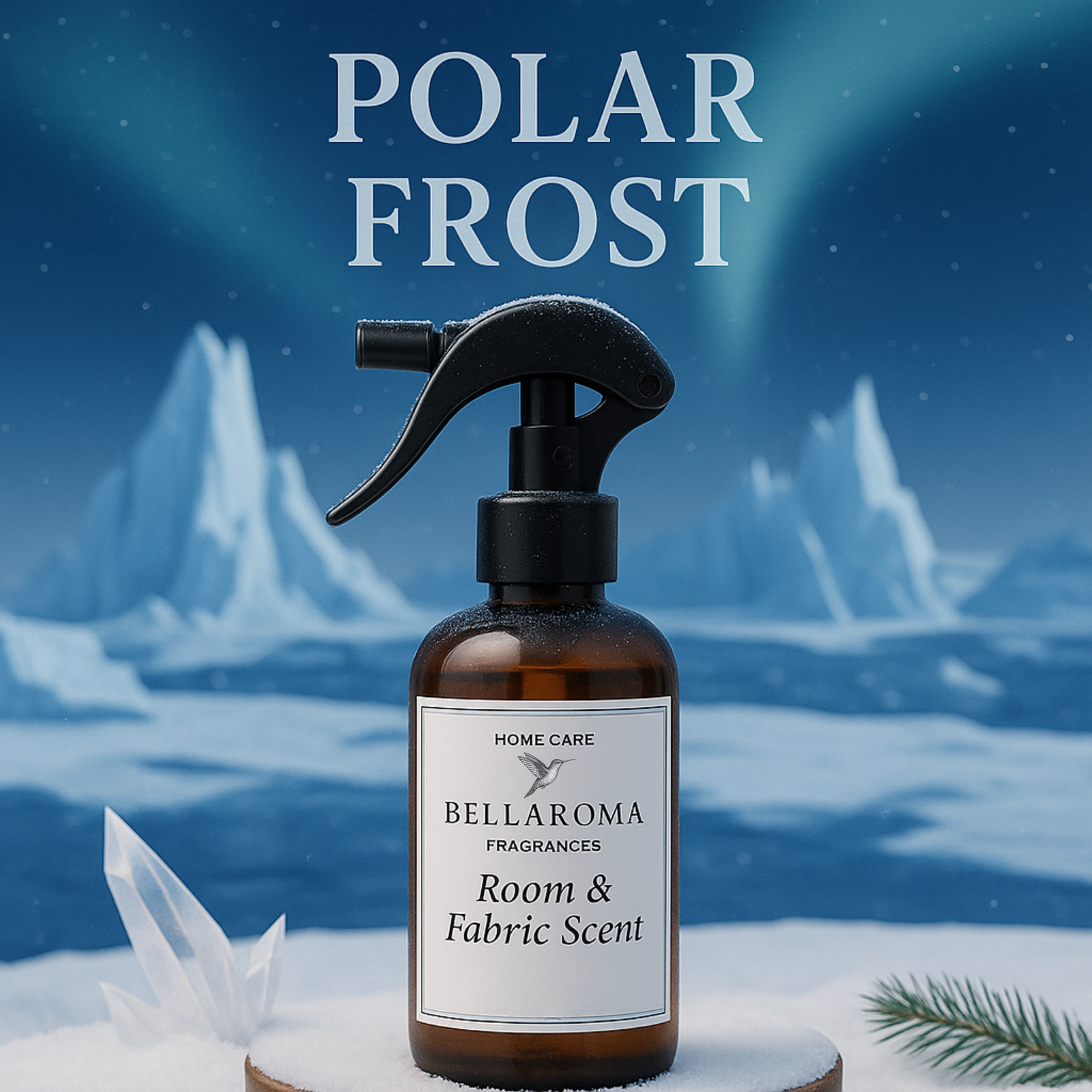 Una explosión de frescura intensa. Polar Frost te transporta a un paisaje ártico y remoto. La composición evoca una Navidad helada, donde el frío penetrante se combina con una luz blanca y luminosa. Es la promesa de un aire frío y cristalino, creando una sensación de limpieza extrema y claridad refrescante