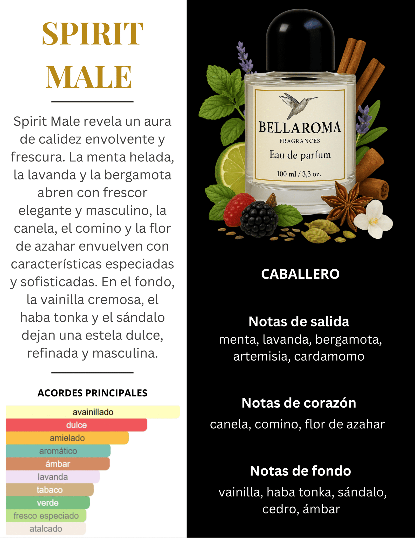Spirit Male es una fragancia que combina la frescura aromática con una calidez envolvente, diseñada para quienes dejan huella con estilo y confianza.
